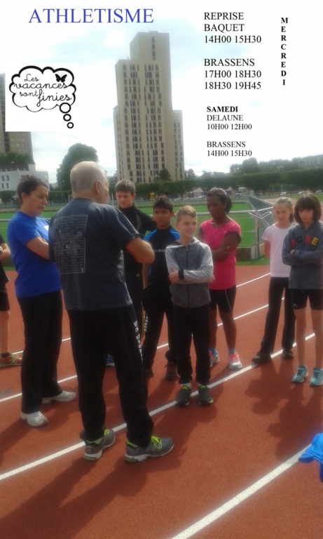 Le MERCREDI, aire d'athlétisme, entrée par le centre Brassens rue du Maréchal Leclerc, de 18h30 à 20h00 (en cas d'intempéries- fortes pluies, tempêtes, gel, neige- activité en salle) Le SAMEDI, aire d'athlétisme, entrée par le centre Brassens rue du Maréchal Leclerc, de 14h00 à 15h30